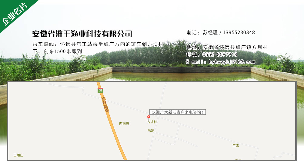 安徽省淮王漁業科技有限公司是一家股份制民營科技企業。2004年成立,公司以“創新機制與理念、強調特色與效益、注重質量與品牌、依靠科技與合作、發展龍頭與產業”為指導思想,主營泥鰍等魚類苗種繁育、臺灣泥鰍養殖以及觀光休閑漁業,承擔了多項國家、安徽省、市、縣有關項目的實施工作。   公司基地位于懷遠縣魏莊鎮方壩村,懷魏路東1公里,北靠青溝河。這里電力通暢,交通方便,水源充沛,水質清新,周邊無工業污染。該良種場是我國以泥鰍、大鱗副泥鰍等鰍科魚類的種質資源保護和良種繁育為主的泥鰍良種繁育基地。良種場建設標準是以現代生物技術為依托,建成集科技化、生態化、設施化、休閑化為一體的開放式、園林式的國家級鰍科魚類原良種場。   公司現有人員65人,本科以上學歷6人,技術研發人員12人。主要產品是淮王牌泥鰍、大鱗副泥鰍苗種,商...